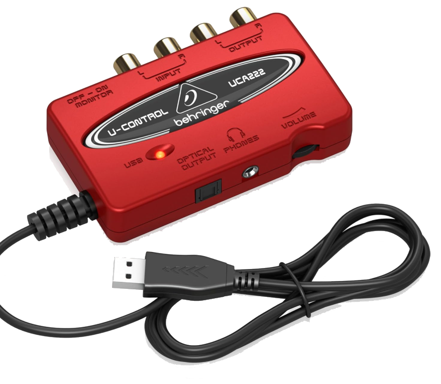 L'interface de numérisation : La carte son externe Behringer UCA222, choisie pour sa stabilité et sa transparence (voir détails à la page « Fournitures »).